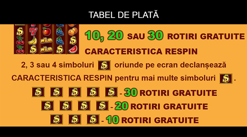 Flaming Hot Extreme slot RTP nu este atât de mare precum sloturile NetEnt, dar acesta nu poate fi considerat tocmai un neajuns. Simbolul cu Dolar, indiferent unde apare, cu condiția să fie cel puțin 3, activează jocul cu runde gratis. În funcție de numărul de simboluri Dolar pe role veți primi și numărul respectiv de jocuri bonus – 10, 20 sau 30.
