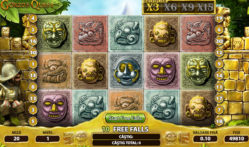 Gonzo’s Quest păcănele este realizat pe 5 role și 3 rânduri. Dispune de 20 de linii de plată cu grafică și imagini superbe. Rolele nu se rotesc, ci simbolurile cad de sus – Avalanche Reels. O să observați că simbolurile explodează imediat ce formează o combinație câștigătoare și sunt înlocuite de pictograme noi, care aterizează ca să umple spațiile goale.