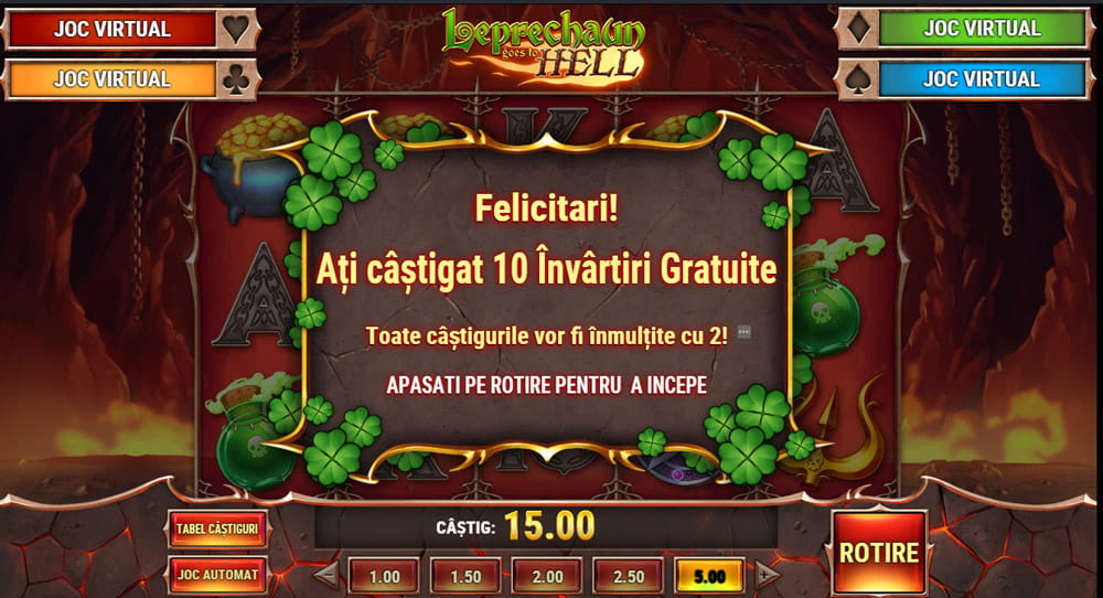 Puteți face câte rotiri doriți, jocul este gratis și nu trebuie să furnizați niciun fel de date. Setați Leprechaun goes to Hell online slot pentru categoria voastră și încercați-l din mai multe perspective. O să vreți să aveți volumul la nivel optim, coloana sonoră care acompaniază jocul este genială și vă transpune exact în modul dorit.