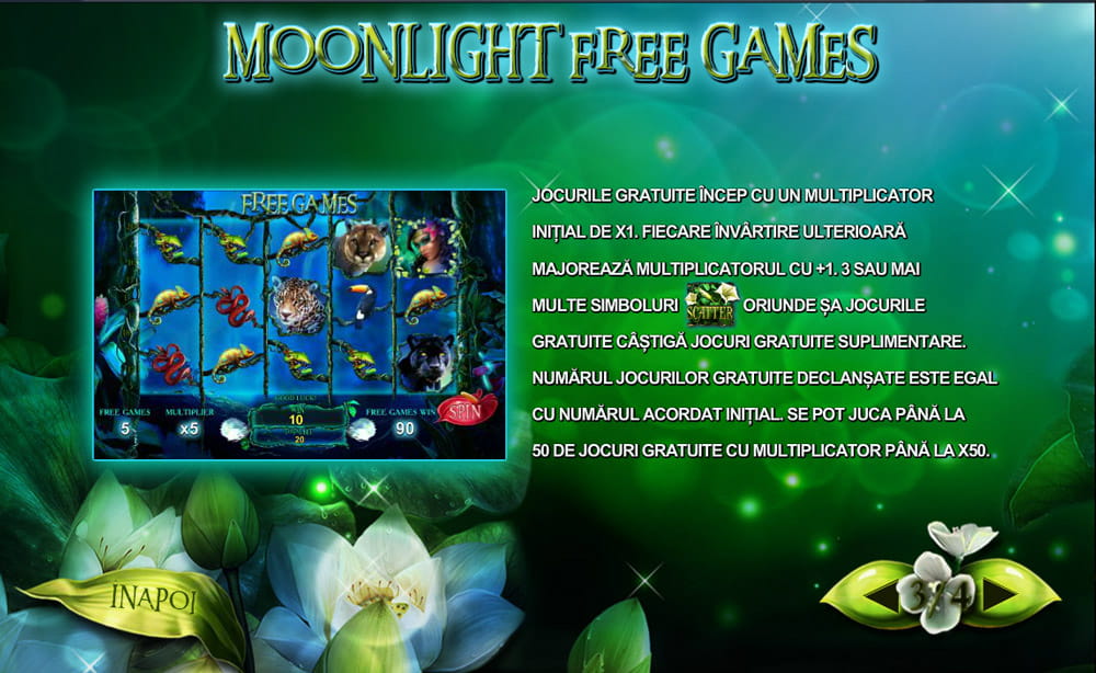 Simbolul Scatter, reprezentat de floarea lunii face intrarea în jocul bonus. În funcție de câte elemente a declanșat runda bonus, aveți numărul de rotiri gratuite. Pentru 3 simboluri Scatter, rotirile gratuite sunt între 5 și 15, pentru 4 simboluri, rotirile sunt între 8 și 18, iar pentru 5 simboluri Scatter, numărul de rotiri gratuite este între 10 și 20.