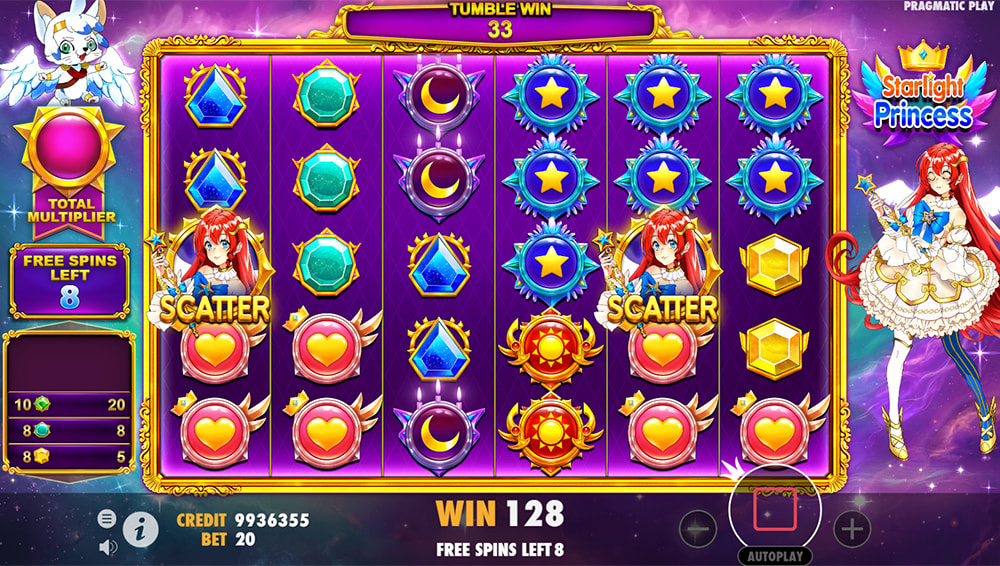 Starlight Princess online slot se remarcă prin jocurile bonus captivante. Una dintre caracteristicile deosebite ale jocului este funcția câștiguri în cascadă. După ce o combinație câștigătoare este plătită, simbolurile respective dispar, lăsând loc pentru altele să cadă și să creeze combinații noi. Acest aspect adaugă șansă suplimentară la fiecare rotire.